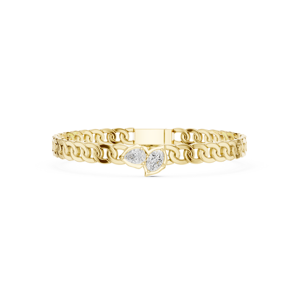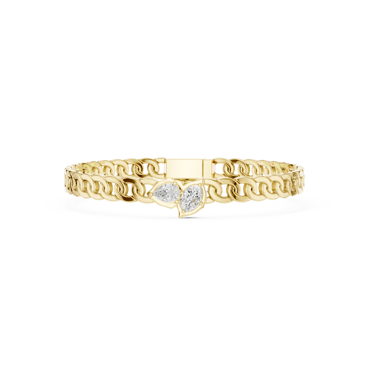 10K Yellow Gold Double Diamond Link Chain Bracelet