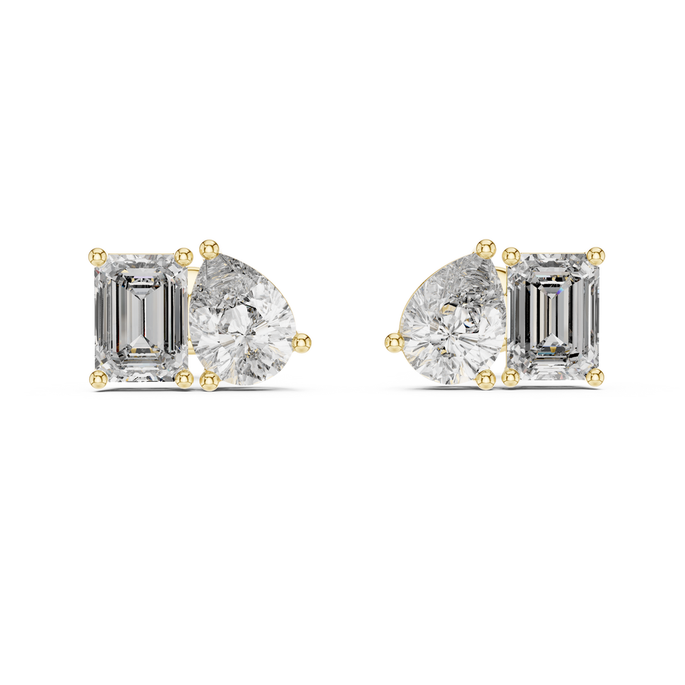 10K Yellow Gold Lab Grown Emerald Cut Luxury Duo Brilliance Diamond Stud Earrings