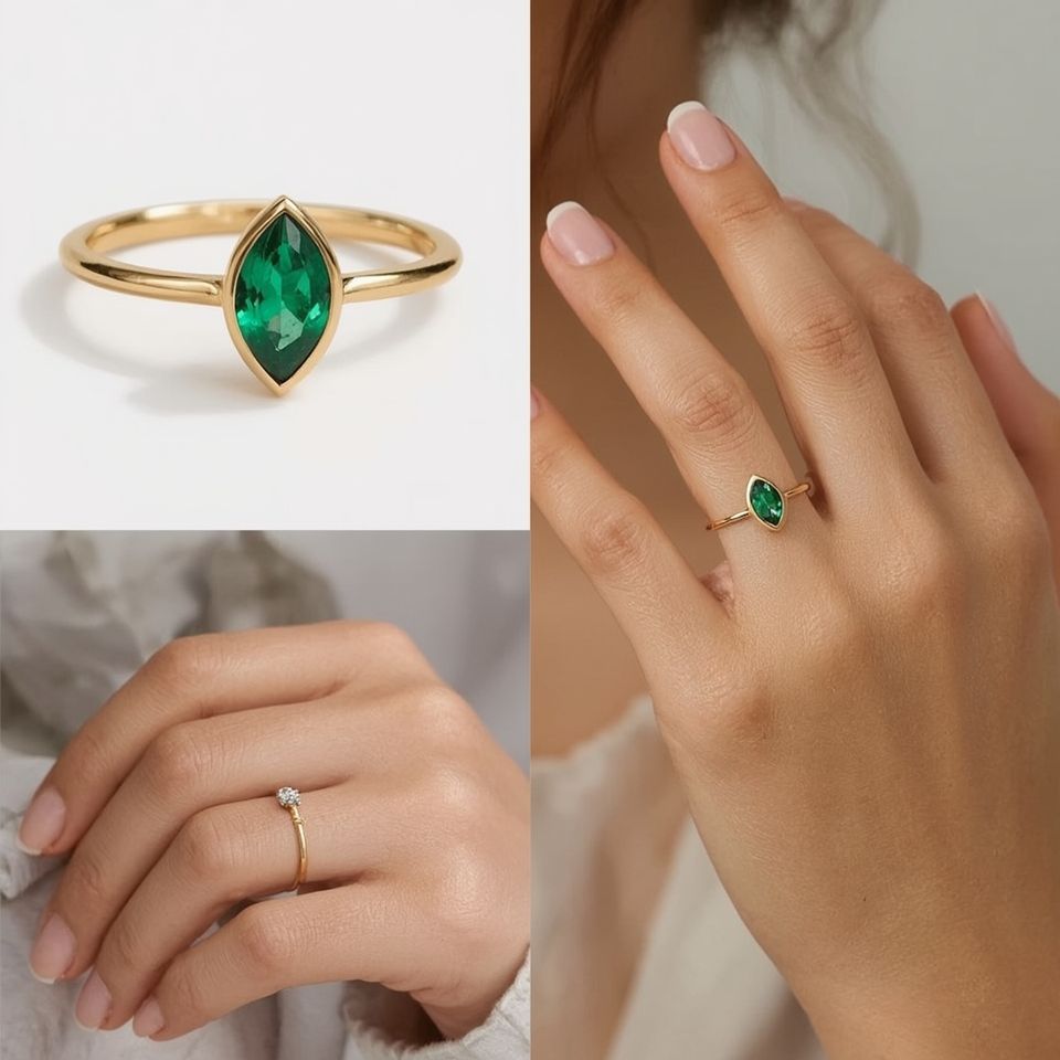 10K Yellow Gold Emerald Ring for Women Minimal Fine Jewelry Sustainable Recycled Real Gold OEM Manufacturer