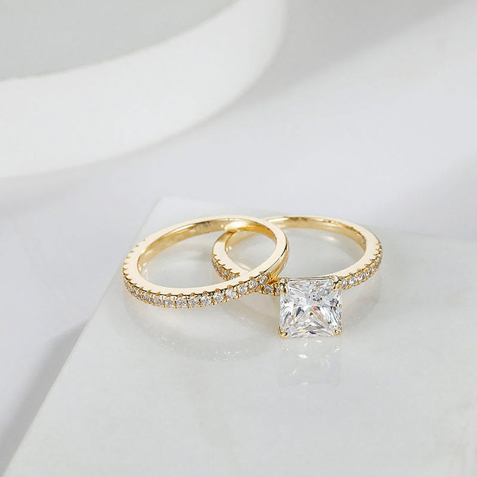 10K Yellow Gold Princess Cut Lab Diamond Eternity Set Stackable Wedding Band Engagement Proposal Ring Couple Ring Set for lovers