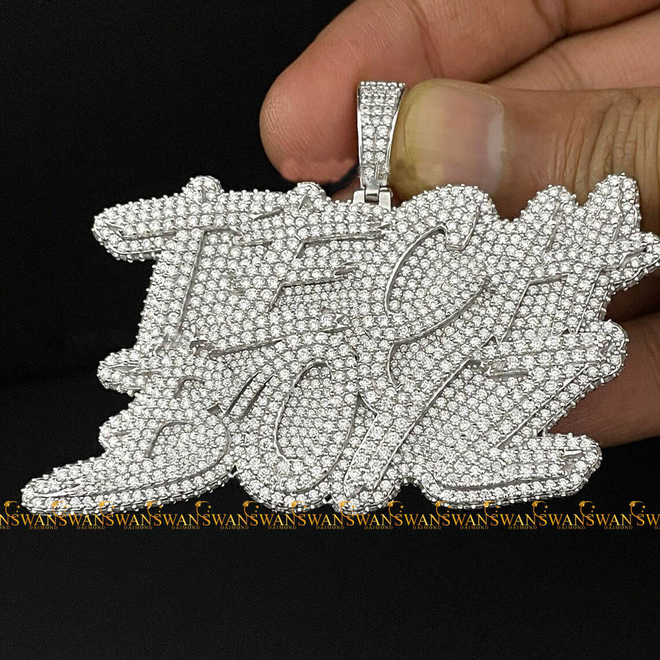 10Kt White Gold Hip Hop Alphabetic Name Pendant Enhanced With Round Brilliant Cut VVs Clarity Moissanite Diamonds