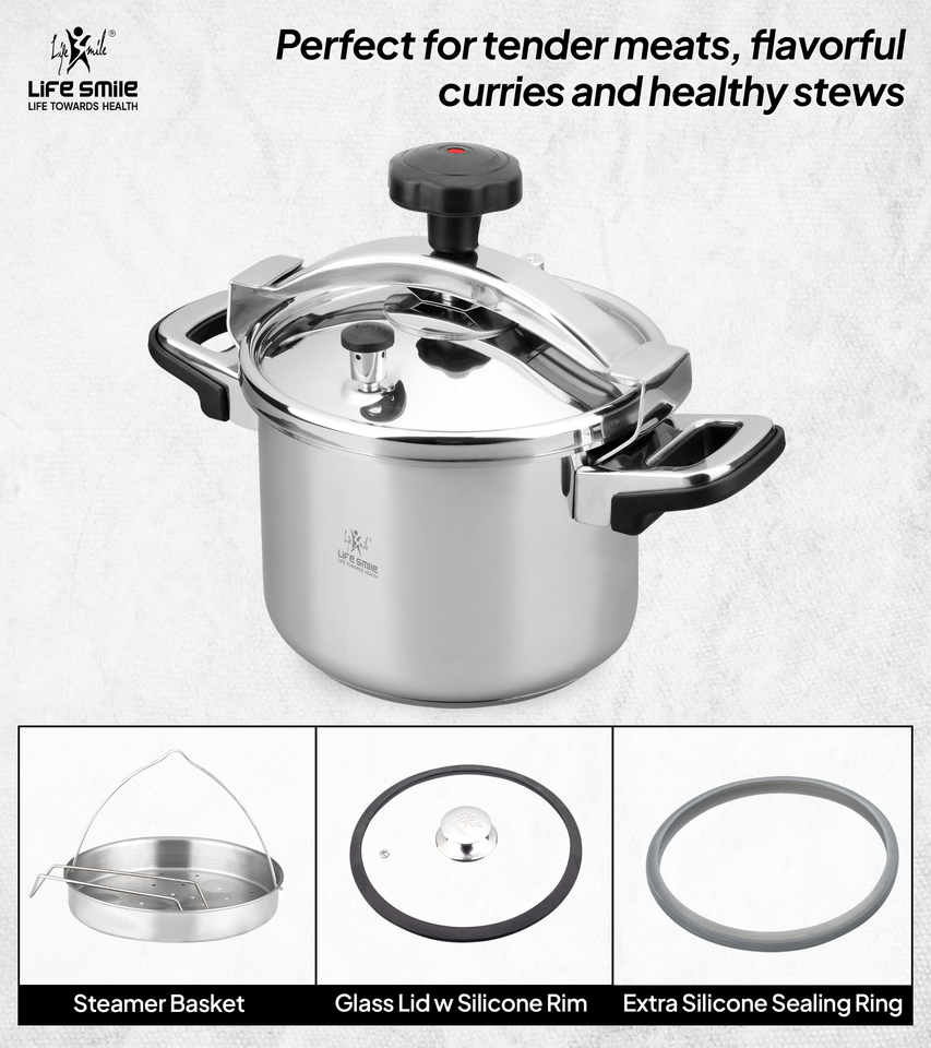 10L Premium 18/10 Stainless Steel Pressure Cooker with Steamer Basket & Glass Lid