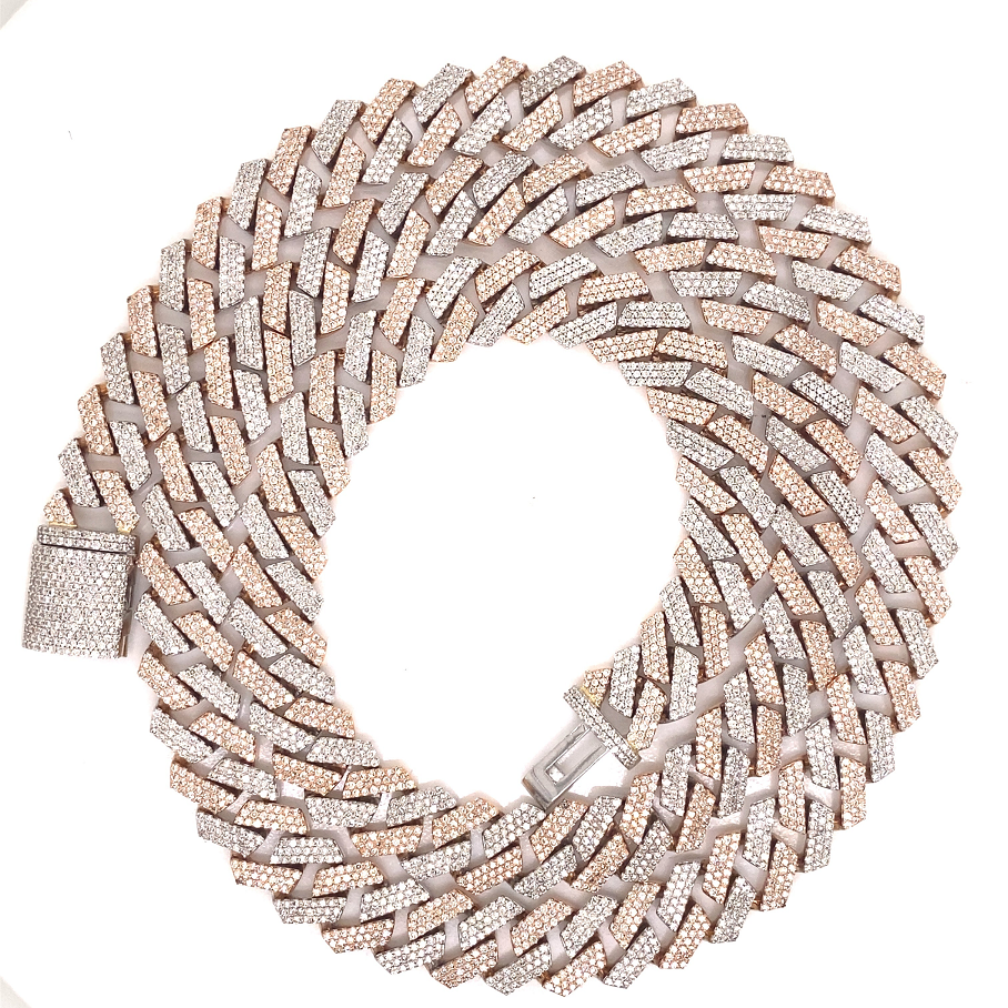 10MM Two Tone Rose and White Moissanite Diamond Cuban Chain Necklace for Luxury Fashion Collections