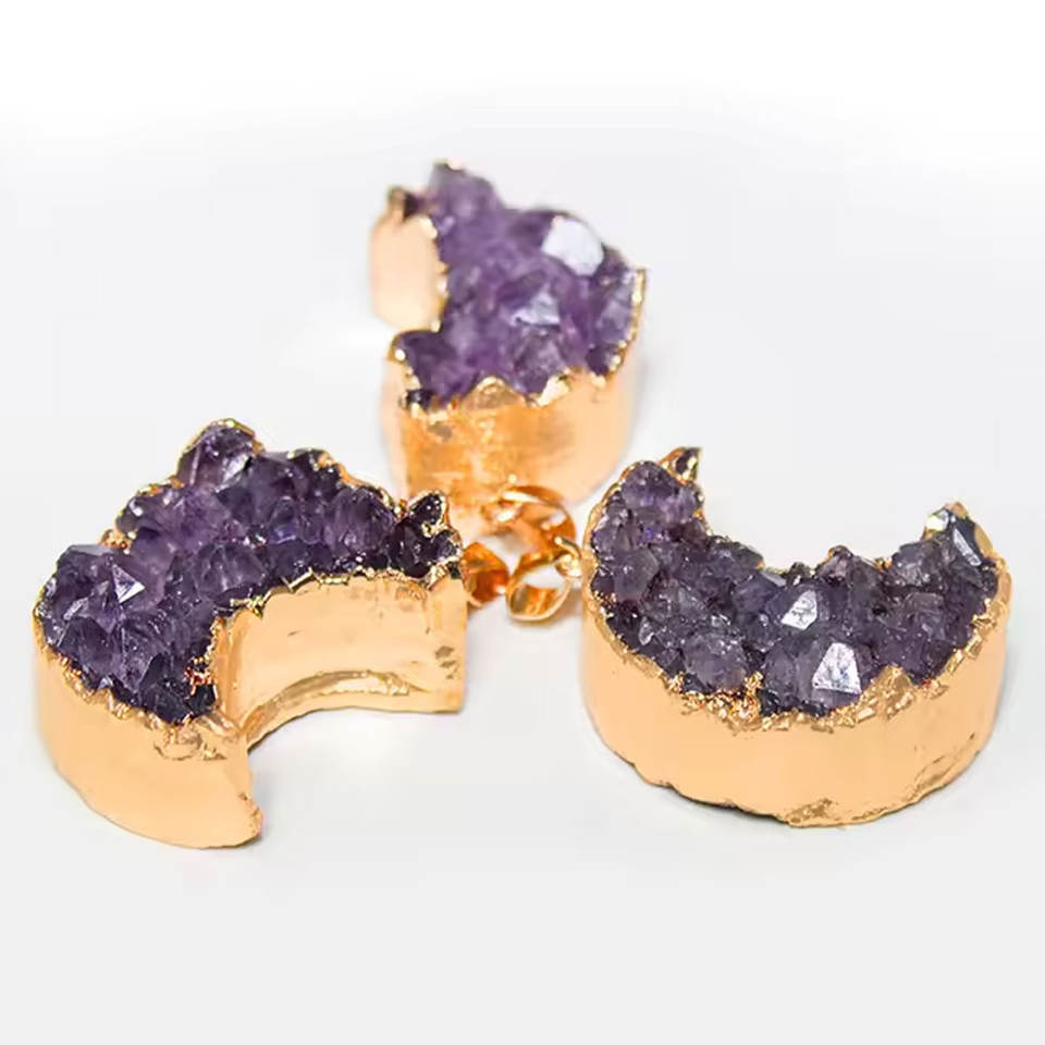 10To25mm Sugar Amethyst Raw Gems Pendant With Chain Handmade 925 Sterling Silver Gold Electroplated Jewelry For Her Pendant