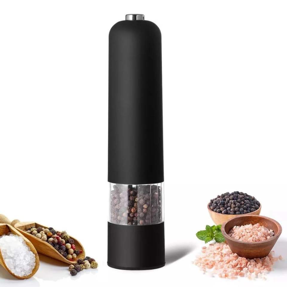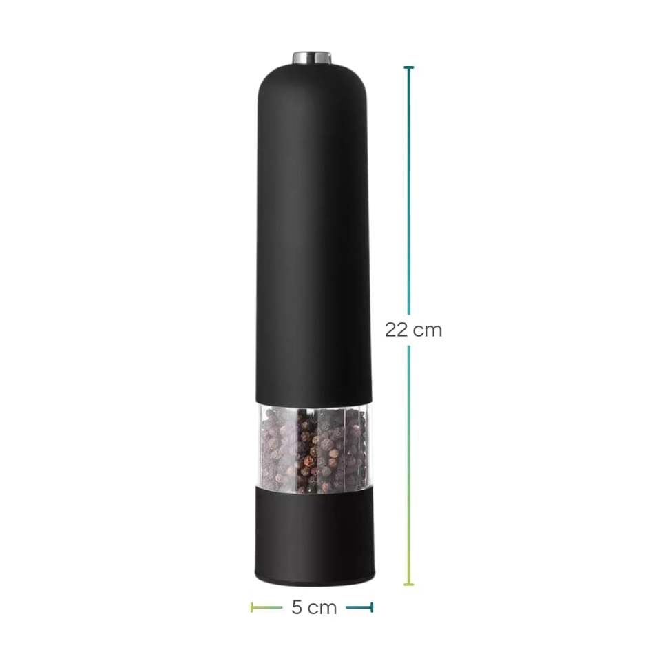 10W Electric Salt Pepper Grinder 5x22cm Battery-Powered with Light Fineness Adjustment Wheel Black/White Electric Mill