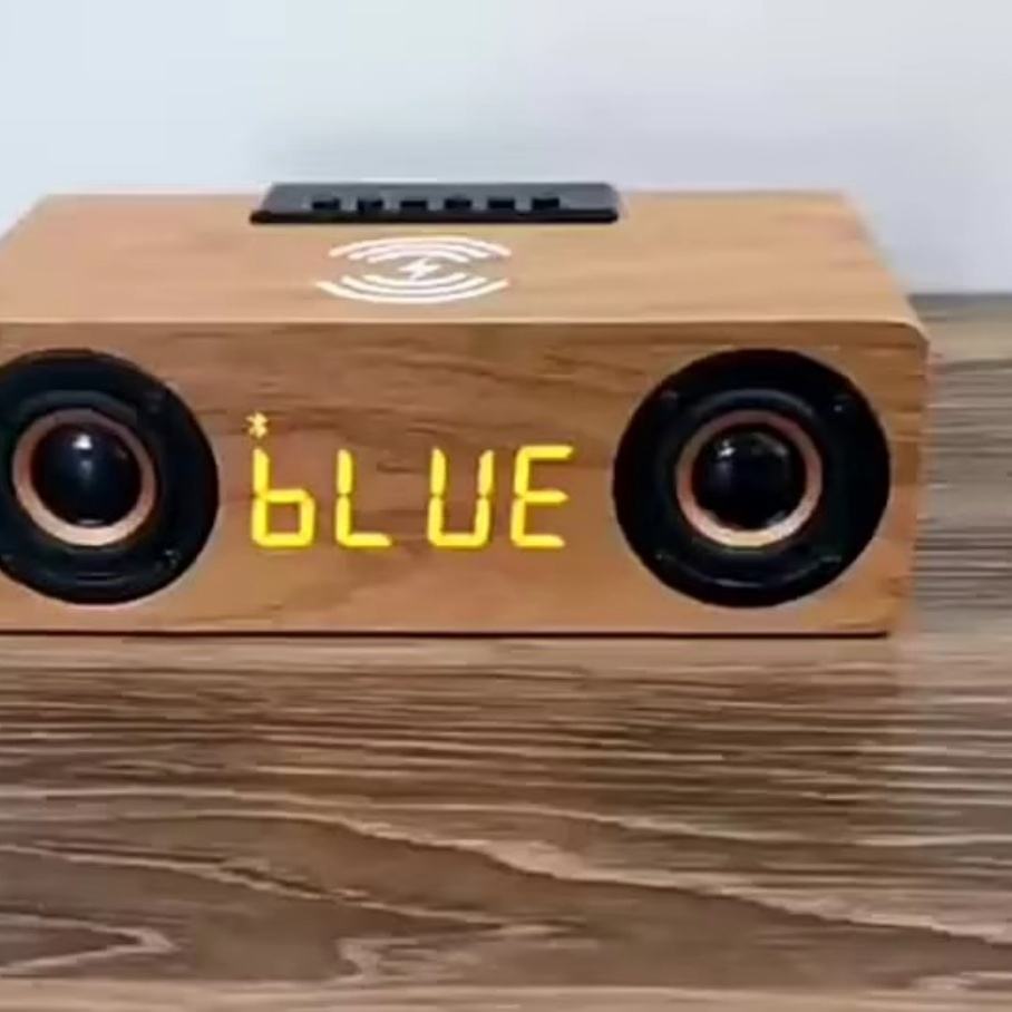 10W Multifunction Desk Table Led Display Alarm Clock FM Radio Blue-tooth BT 5.0 Speaker With Wooden Wireless Charger