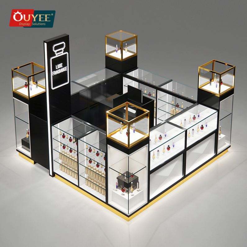 10X10 Shopping Mall Luxury Perfume Cabinet Design Jewelry Counter Perfume Showcase Kiosk for Retail