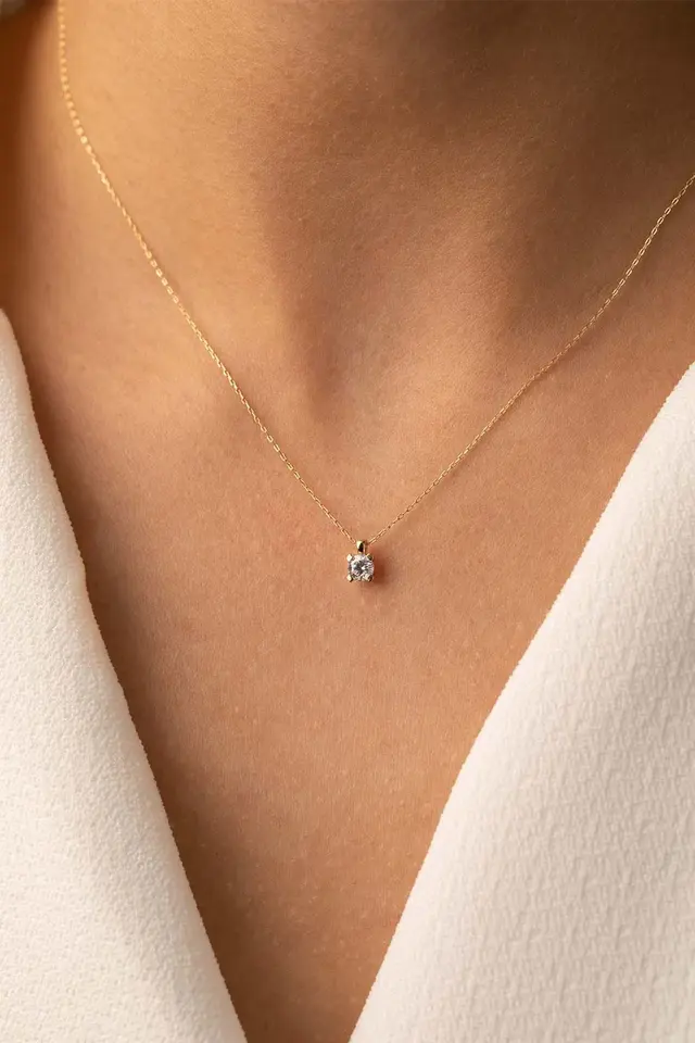 18kt Pure Solid Gold Natural Diamond Solitaire Charm Necklace Luxury Minimalist Prong Pendant for Women for Party Wear Wholesale