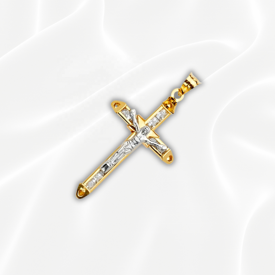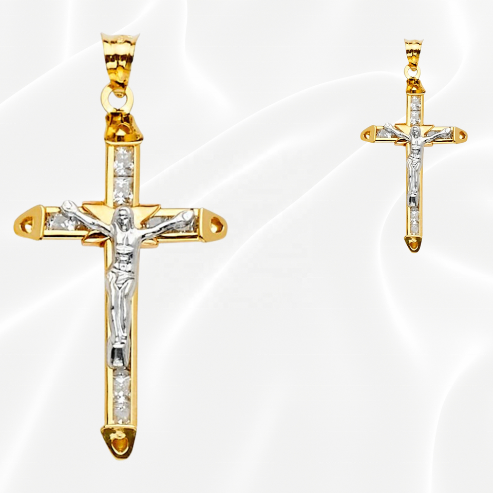 10k Gold Two Tone Plated Crucifix Cross Pendant for Women Men Religious Jewelry Customization Available