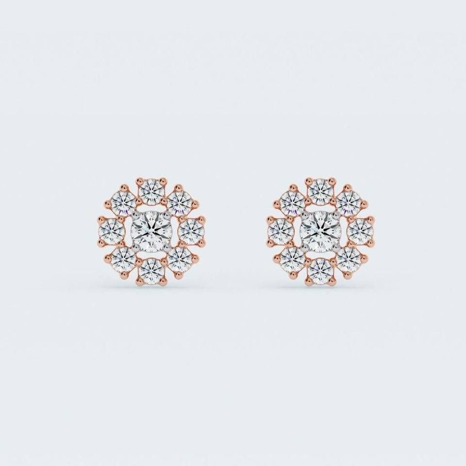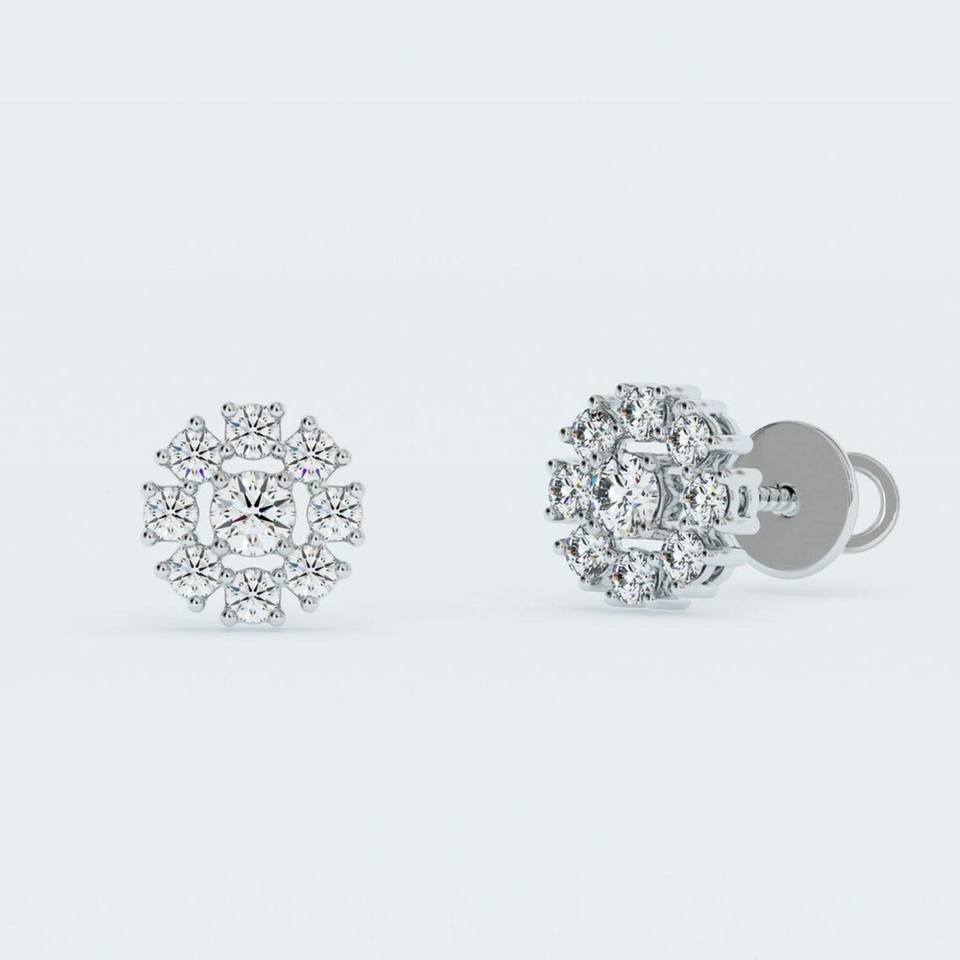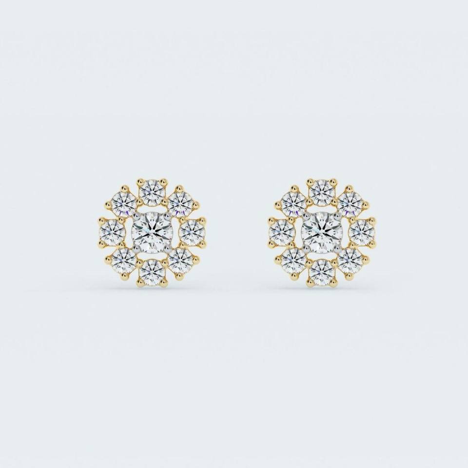 10k Solid Gold Round Halo Lab Grown Diamond Stud Earrings Screw Back Earrings Lab Diamond Halo Earrings CVD Diamond