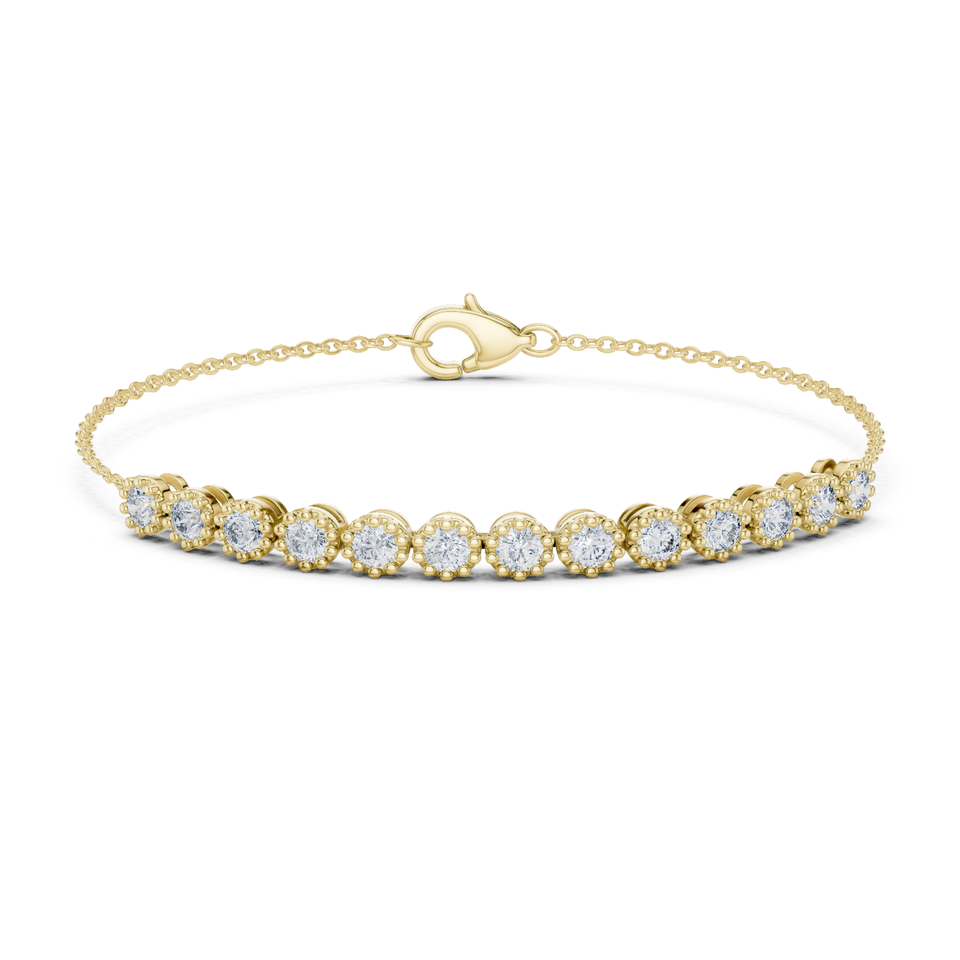 10k Yellow Gold Lab Grown Diamond Round Cut Gold Plated Adjustable Tennis Style Luxury Bracelet for Women with Royal Halo Design