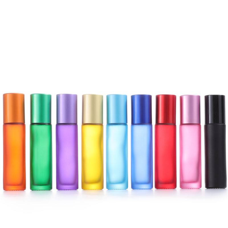 10ml Colorful Glass Essential Oil Roller Bottles Roll-on Seal with Metal Roller for Ball for Fragrance Perfume