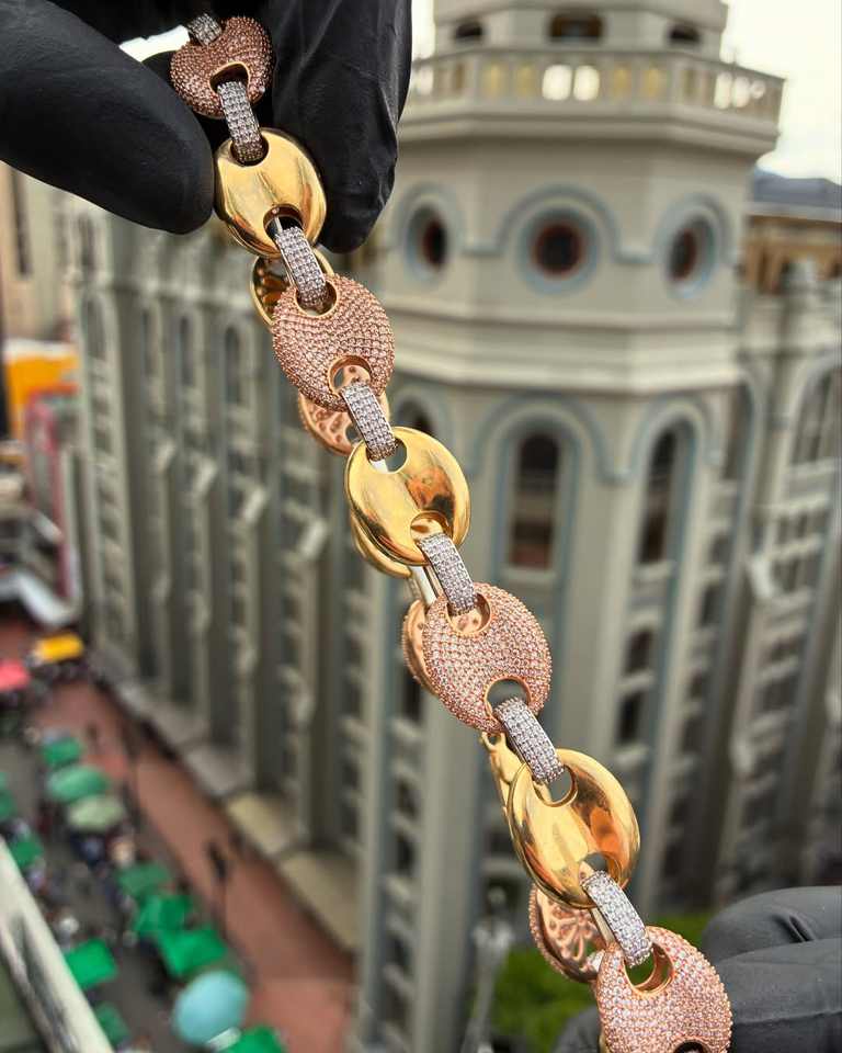 10mm 2 Tone Yellow Rose Gold Plated 925 Sterling Silver Iced Hip Hop Moissanite Chain Necklace with Puffed Anchor Mariner Link