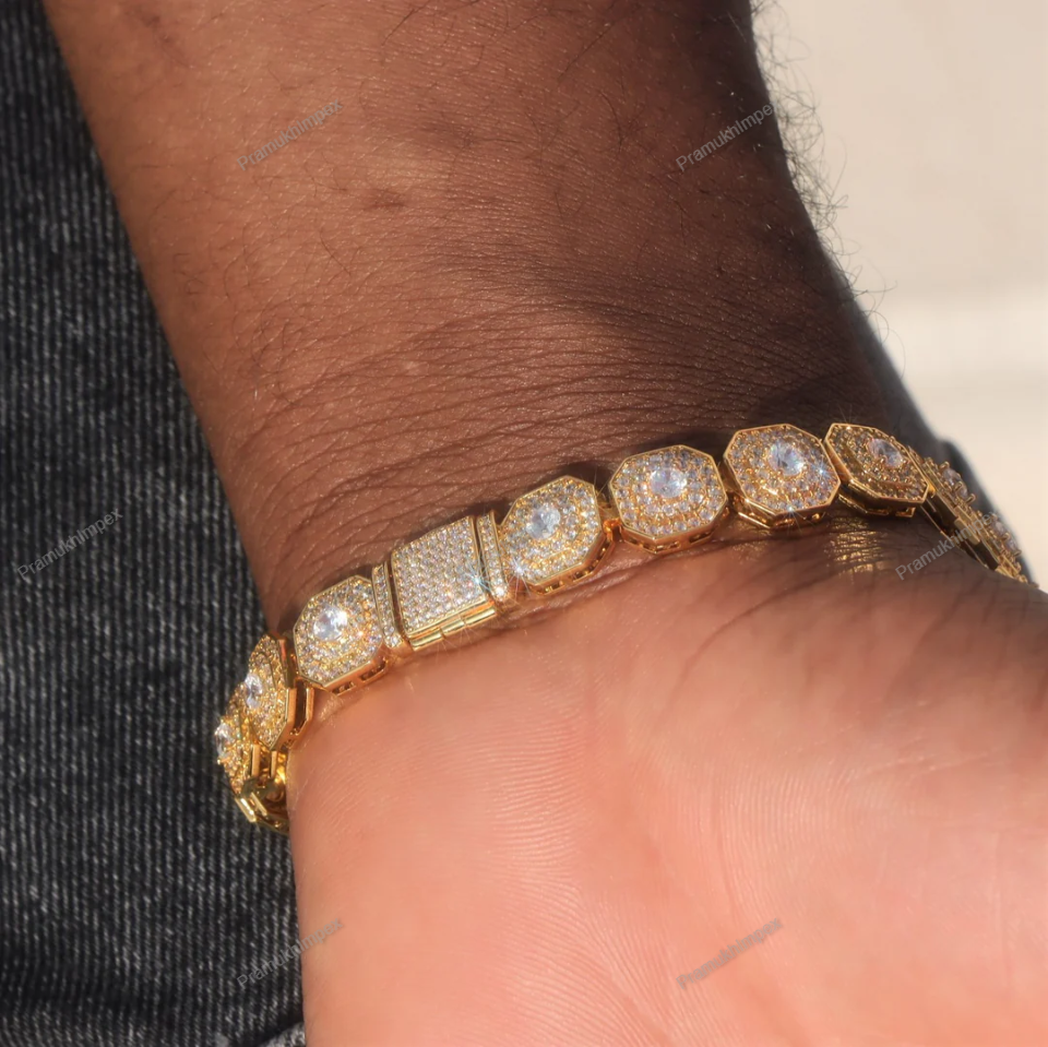 10mm Clustered Tennis Bracelet Personalized Iced Out Hip Hop fancy Jewellery Gold Plated 925 Sterling Silver manufacturing india