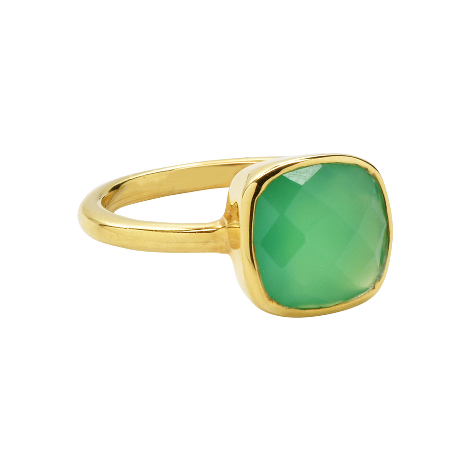 10mm Cushion Green Chalcedony Ring 925 Sterling Silver Collet Set Handmade Green Chalcedony Ring Jewelry Wholesale Suppliers