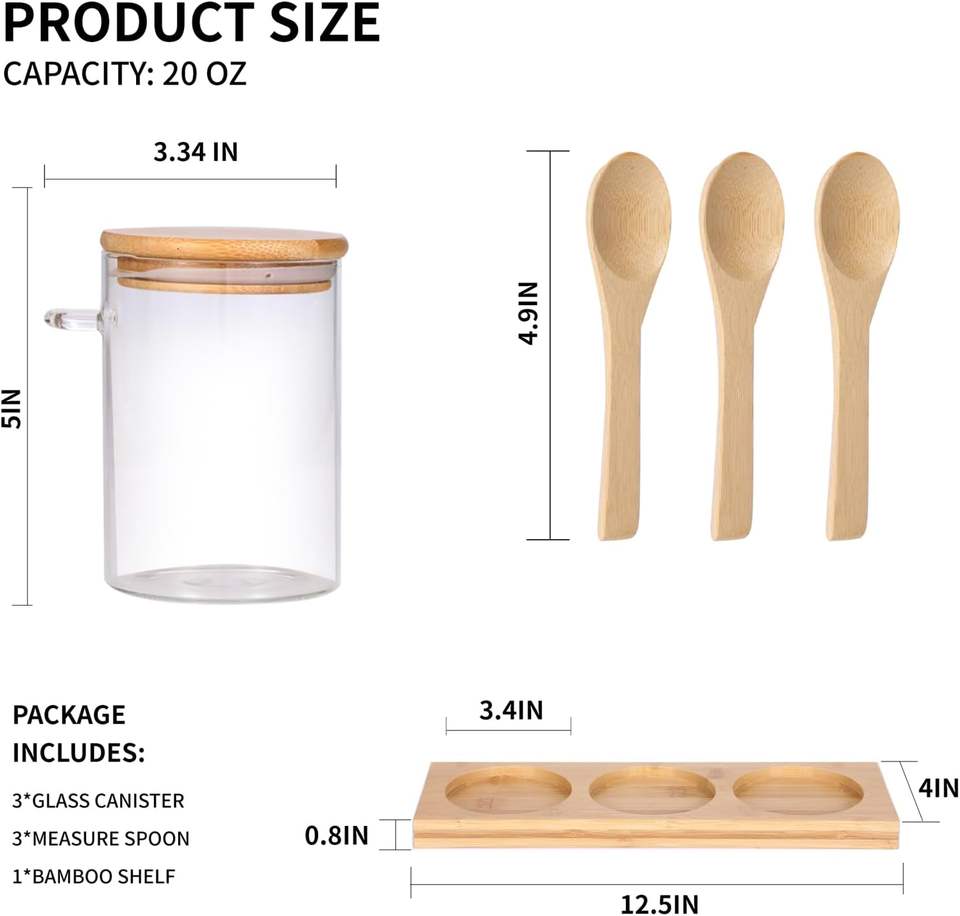 10oz Glass Jars Bamboo Lids Spoons Airtight Kitchen Canisters Coffee Sugar Beans Tea Party Storage Customizable Logo