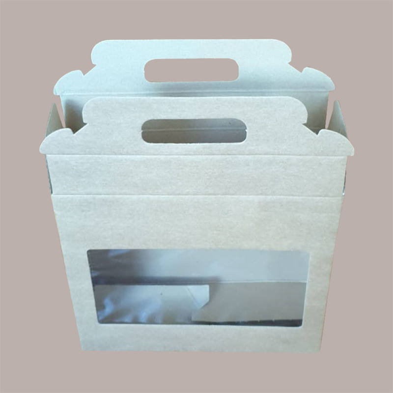 10pcs Smooth Brown Cardboard Gift Packaging Box PVC Window 220x80H195mm Christmas Suitcase Embossed Design Recycled Materials