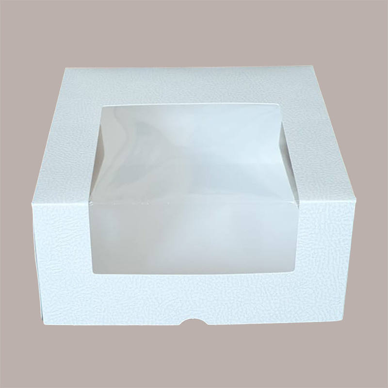 10pcs Tall Square Cake Box White Cardboard UV Glossy Lamination Embossing READY 25x25H10cm Recycled Materials PP Window