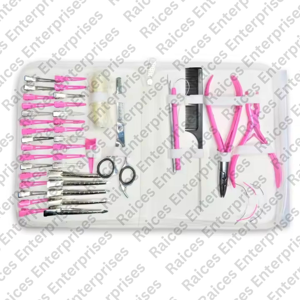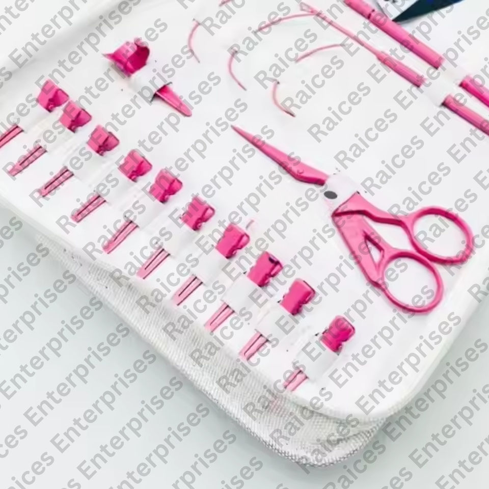 10x Sets Stainless Steel Tape-In Hair Extension Tools Kit Beads Remover Hook Loop C Needle Scissors White Manicure Pedicure Set