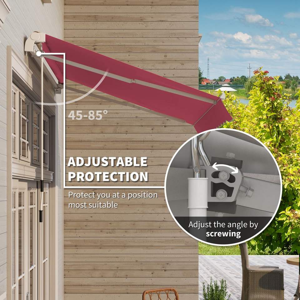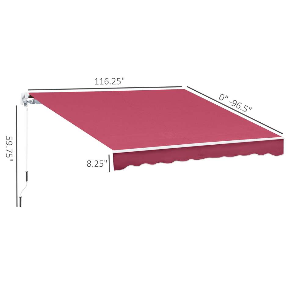 10x8 Ft Retractable Patio Awning UV-Resistant Cranking Sunshield in Claret for Deck & Yard