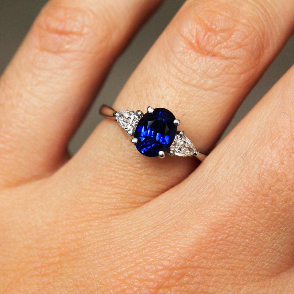 10x8mm Oval Cut Blue CZ Three Stone Engagement Ring in Silver | Classic Solitaire Wedding Jewelry