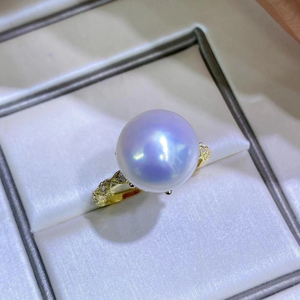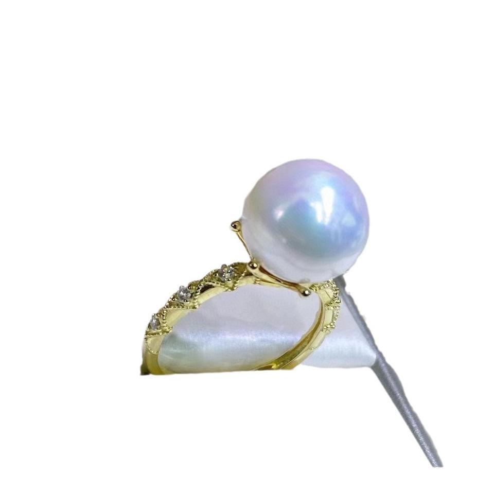 11-12mm Natural Strong Light Edison Pearl Ring Classic Crown Design 925 Sterling Silver Opening Classic Crown Design