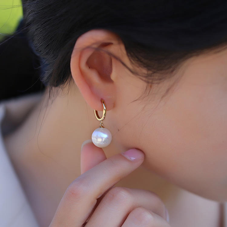 11-12mm Round Freshwater Pearl Stud Earrings S925 Silver Loop Long Design for Women