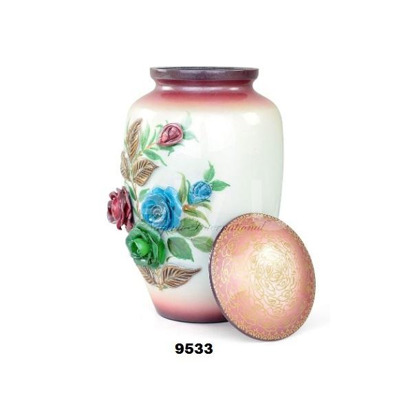11" 3D Carved Decorative Flower Aluminum Cremation Urns for Human Ashes Hand-Crafted Large Urn for Adult Ashes Nibble Red