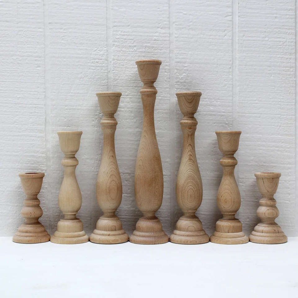 11 9 6-3/4 4 Christmas Home Decoration Wooden Candle Holders Taper Candlestick Stand 7 Piece Wedding Set with Lantern