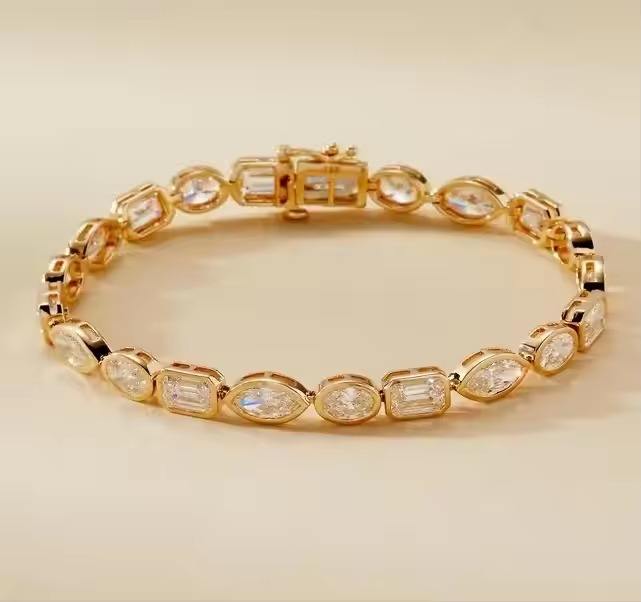 11 Carat Bezel Set Lab Grown Diamond Bracelet Handcrafted Sustainable Multi-Stone Jewelry for Women Moissanite Bangles
