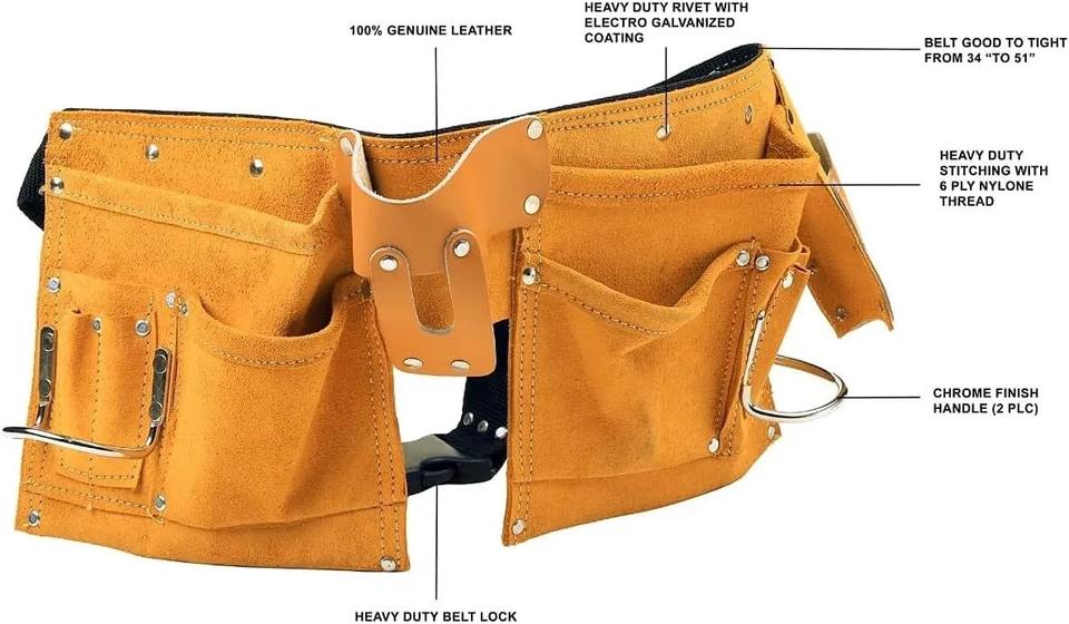 11 POCKET LEATHER TOOL BELT QUICK RELEASE BUCKLE Carpenter Construction Pouch