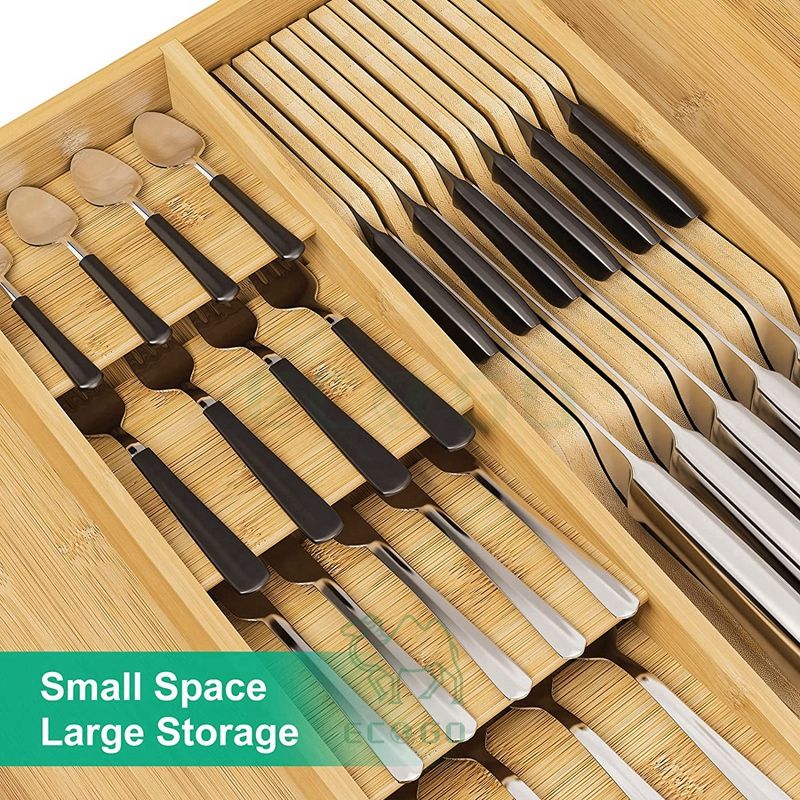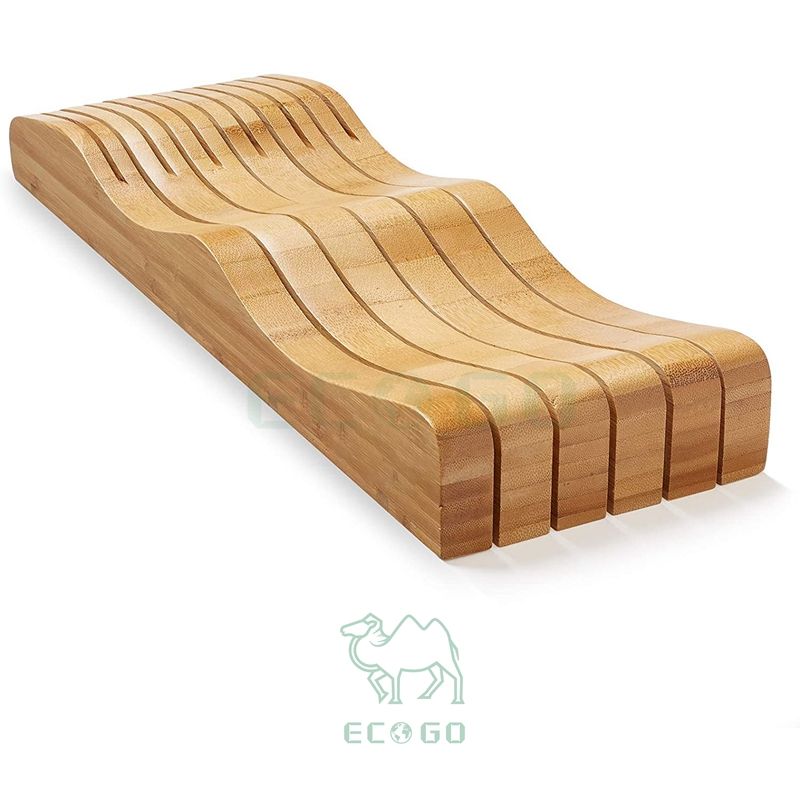 11 - Slot Bamboo in - Drawer Knife Block: Wooden Kitchen Cutlery Storage Organizer for Butcher Knives