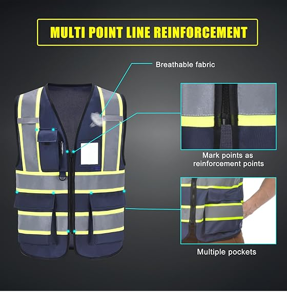 11 color High Vis Reflective Safety Vest for Women Men Security Pocket Zipper