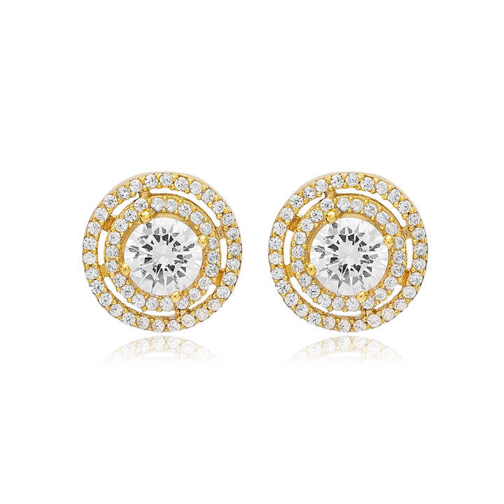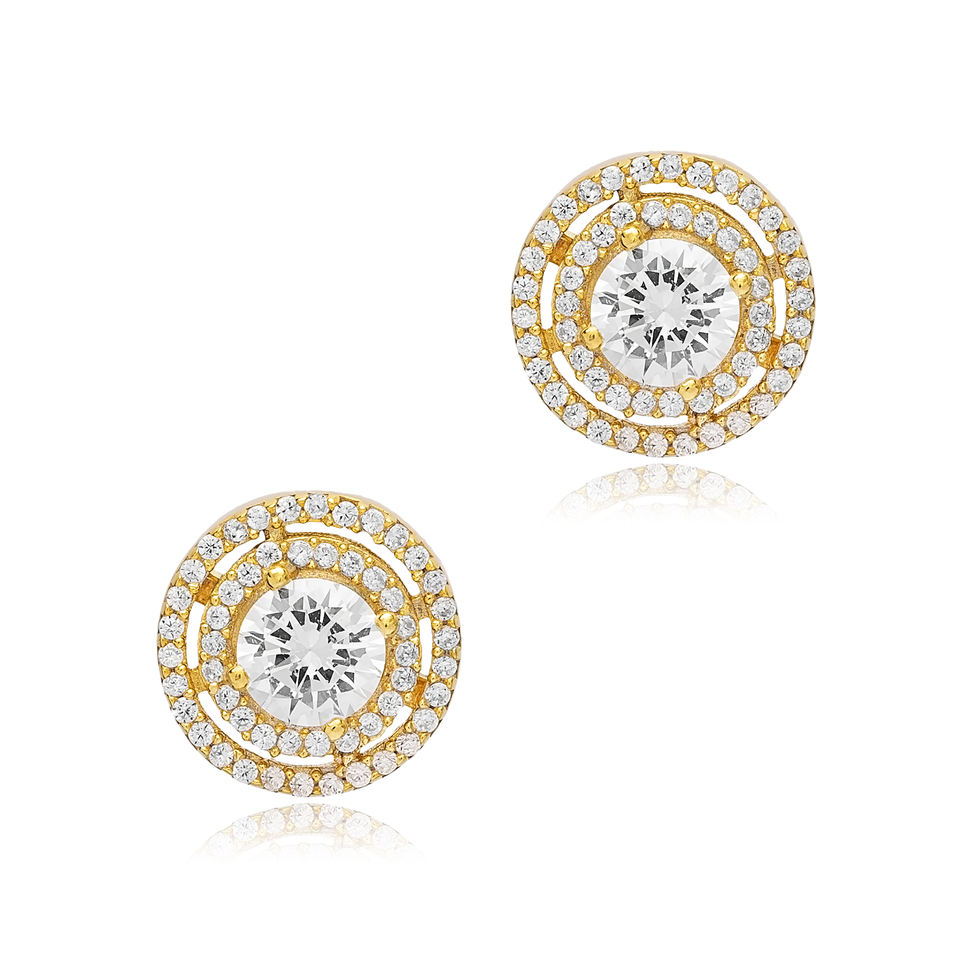 11 mm Clear Zircon Stone Round Design Handcrafted Turkish Wholesale Gold Plated 925 Sterling Silver Stud Earrings for Party Gift