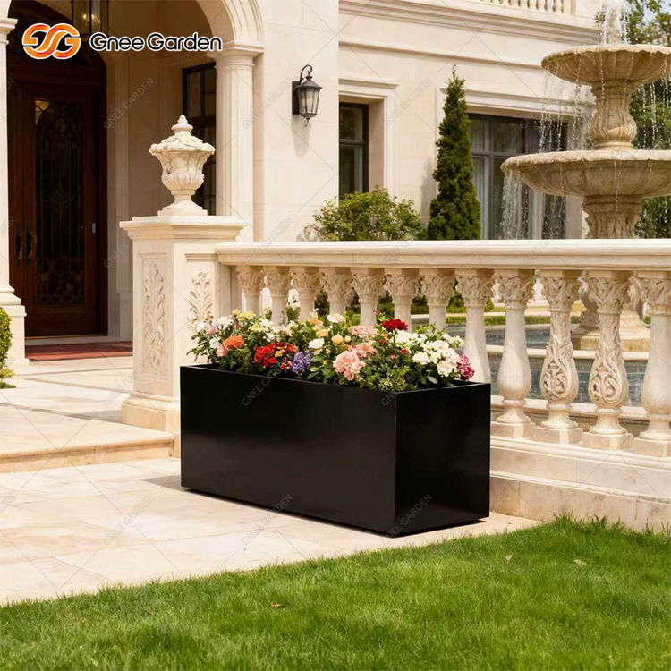 110 L Black Galvanized Steel Planter Outdoor Partition Fence Plant Box Courtyard Landscaping Home Garden American Style