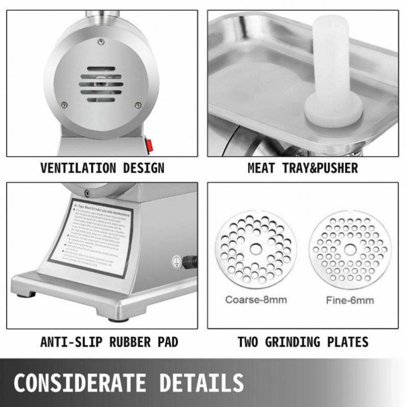 New 1100W Stainless Steel Electric Commercial Meat Grinder 193R/min 1-10L Capacity Food Grinder