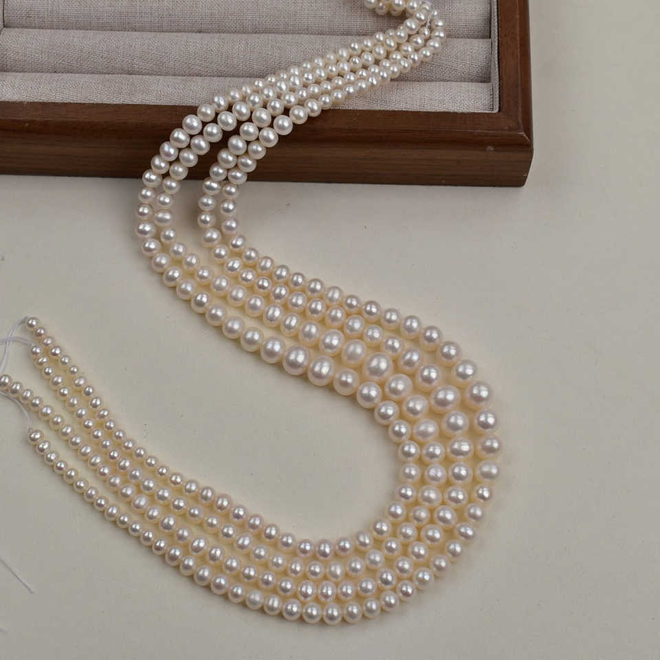 WENCHI 1138 Natural White Freshwater Pearls 40cm Staggered String for DIY Necklace Jewelry Making Material