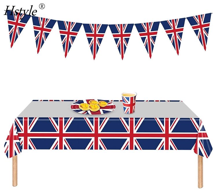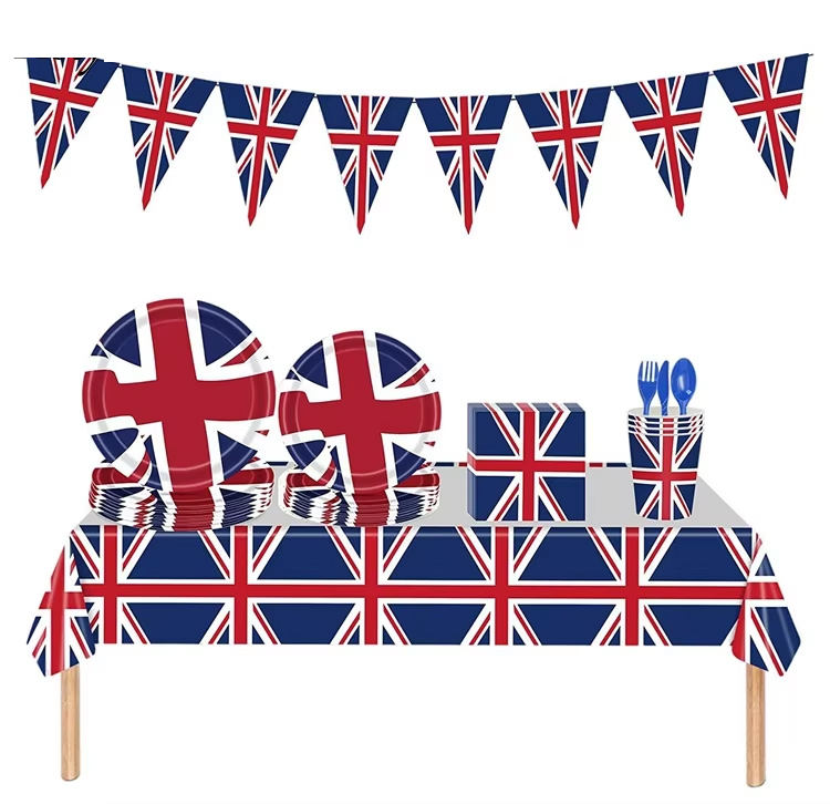 Name:Union Jack Tablecloth Napkins Cups Paper Plates Dinnerware Set