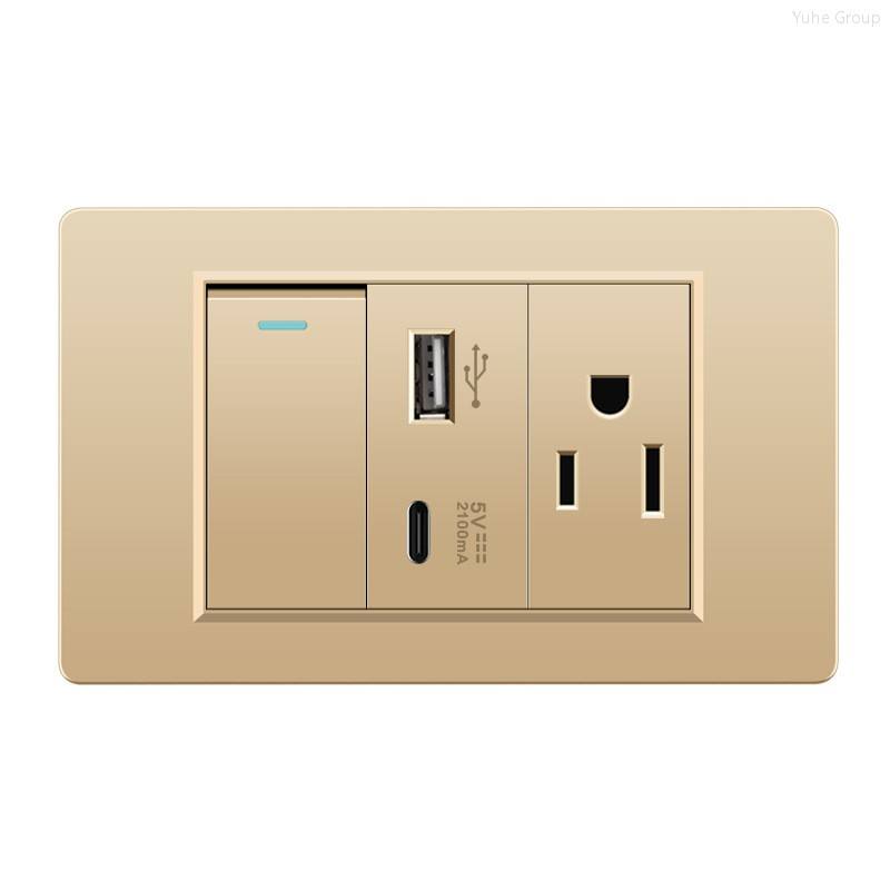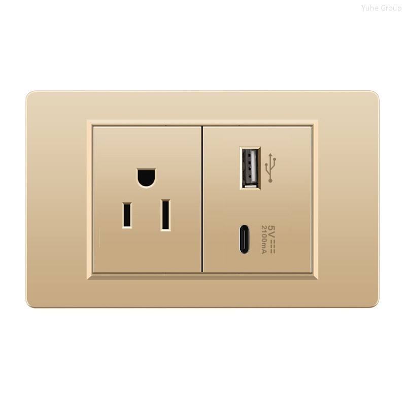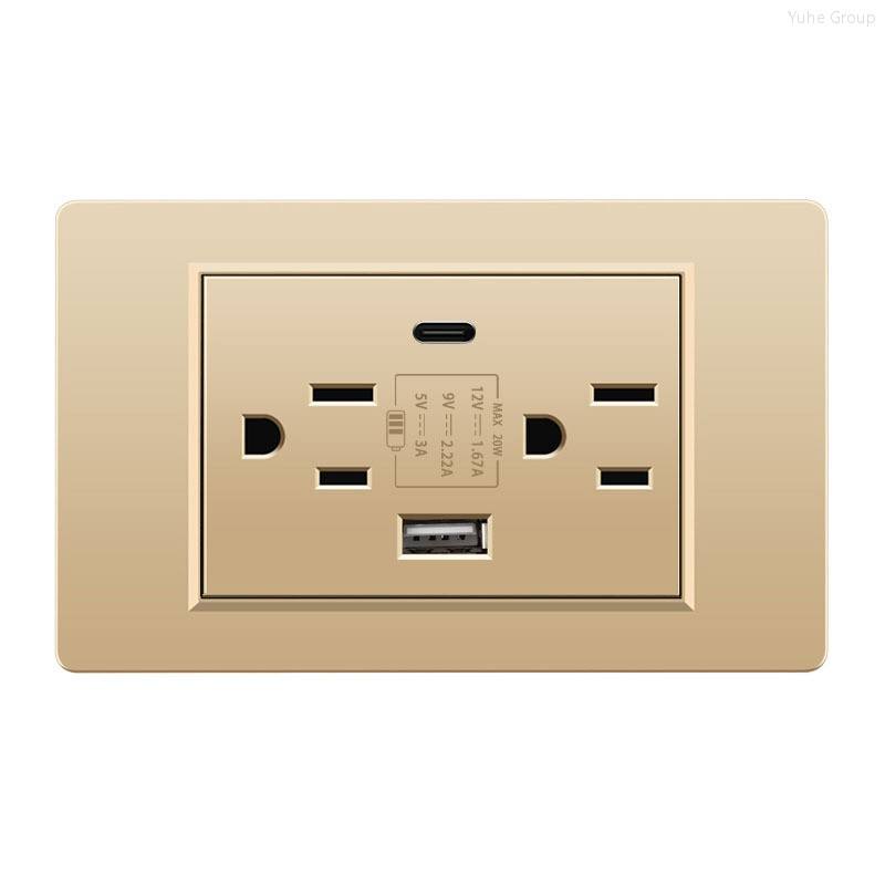 118 Golden American Wall Lamp Switch Socket USB Type C American British EU Power Socket