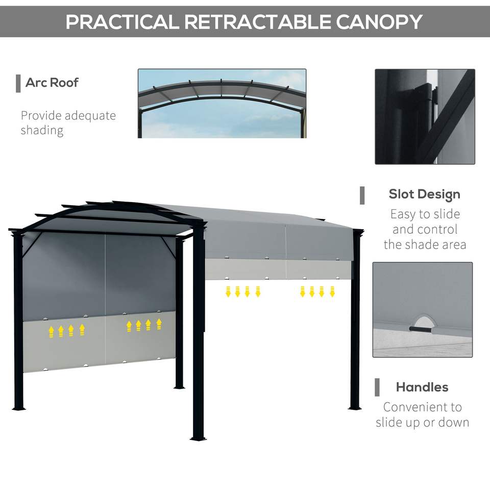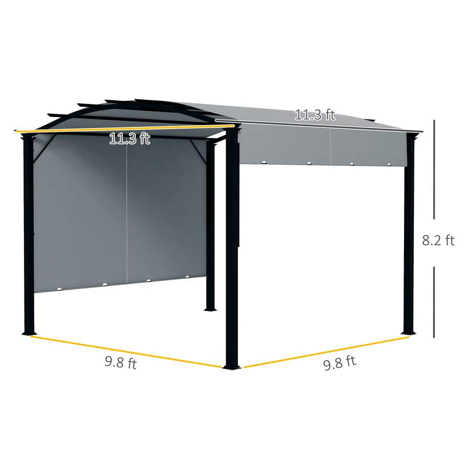 11x11 Retractable Gray Steel Frame Sun Shade Pergola Canopy for Outdoor Backyard Gazebo & Pavilion