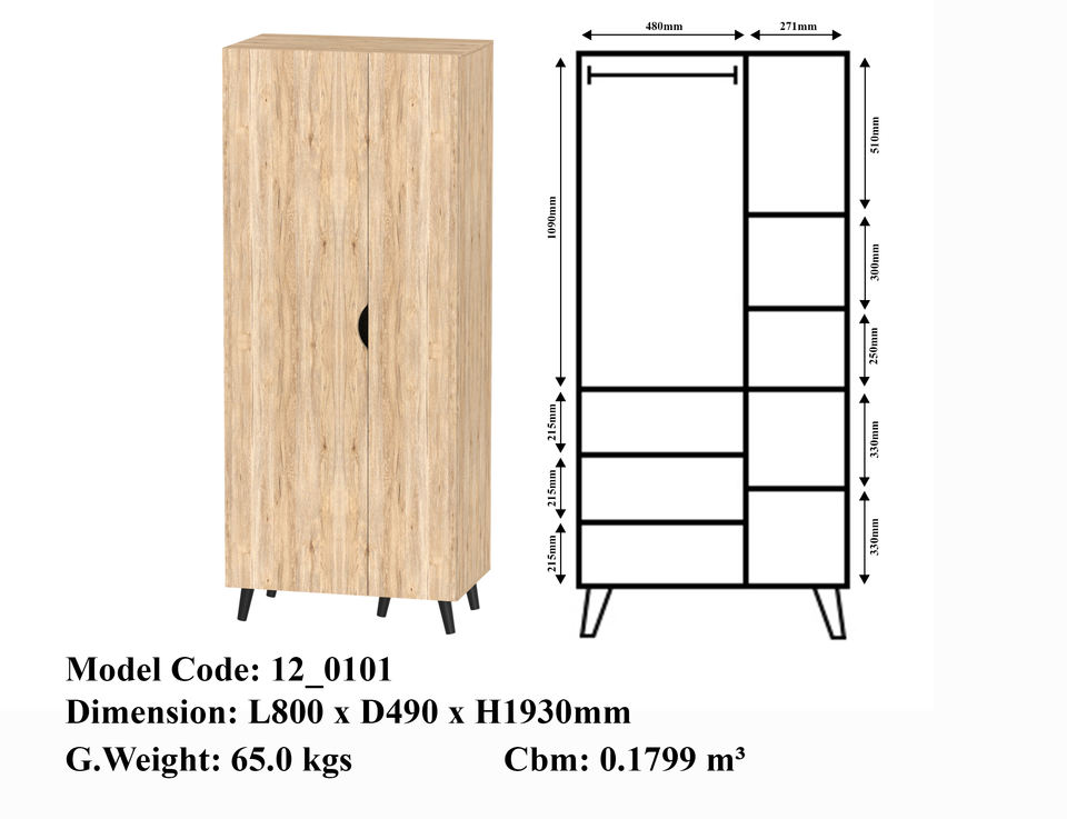 Size:L800 x D490 x H1930 MM