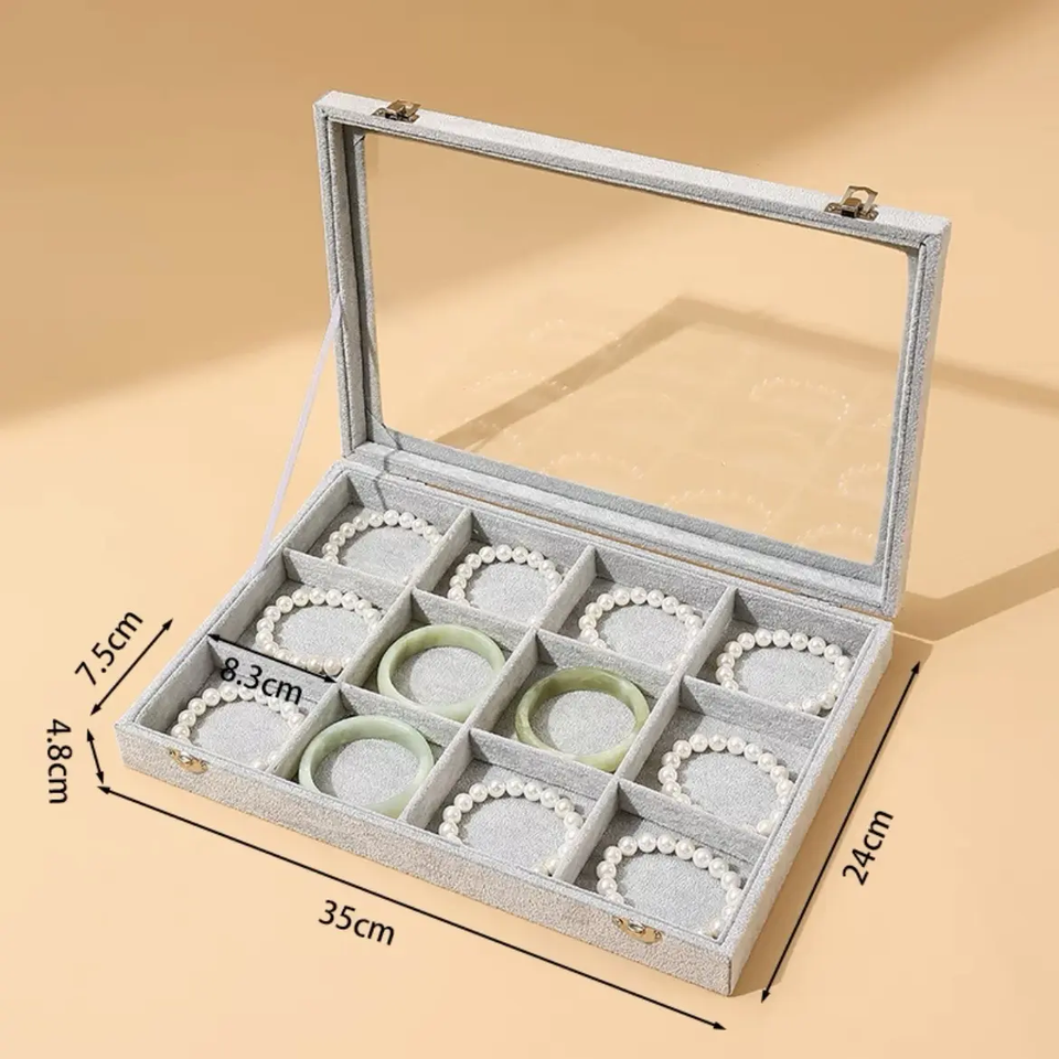 12/24-Slot Clear Lid Velvet Lined Travel Jewelry Case Tray Organizer for Ring Earring Necklace Storage Dresser Countertop