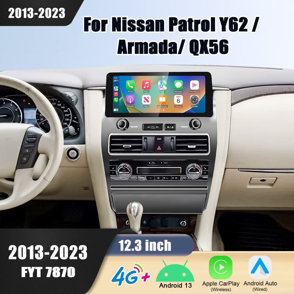 12.3 Inch Android Car Radio Touch Screen for Nissan Patrol Y62 Armada QX56 2013 - 2023 GPS CarPlay