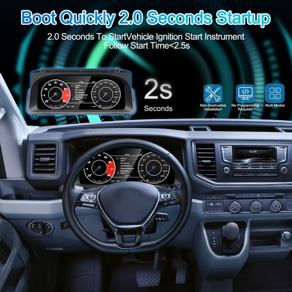 12.3 Inch LCD Car Digital Cluster Dashboard Auto Speedometer Virtual Cockpit Monitor Upgrade for VW Volkswagen T6 2015-2020