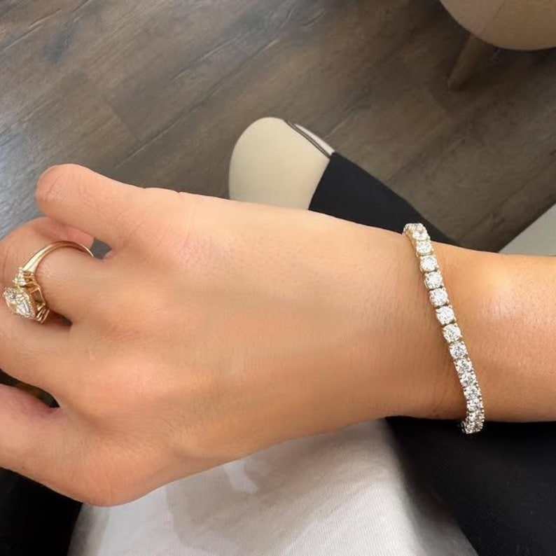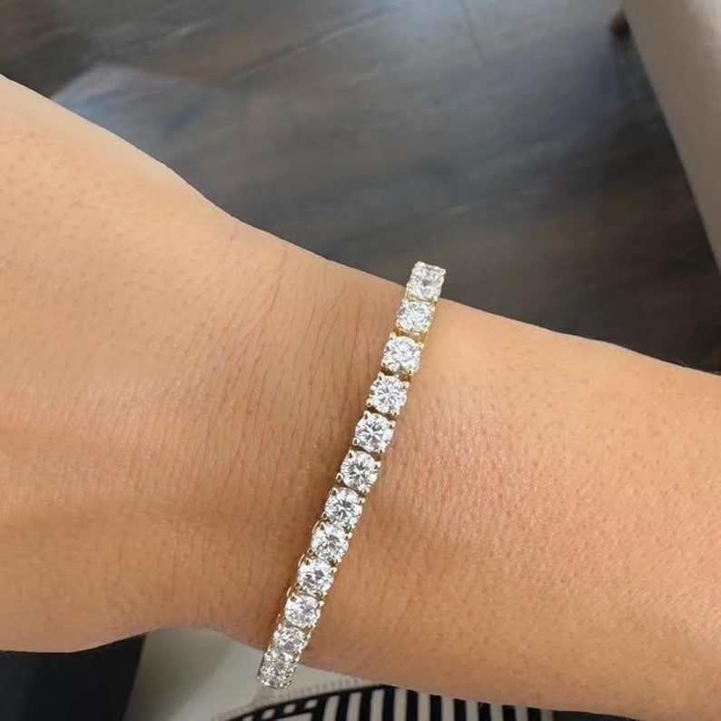 12.5 Carat Lab Diamond Tennis Bracelet, Shiny Lab Diamond Tennis Bracelet, Big Tennis Bracelet, 14k Solid Yellow Gold.