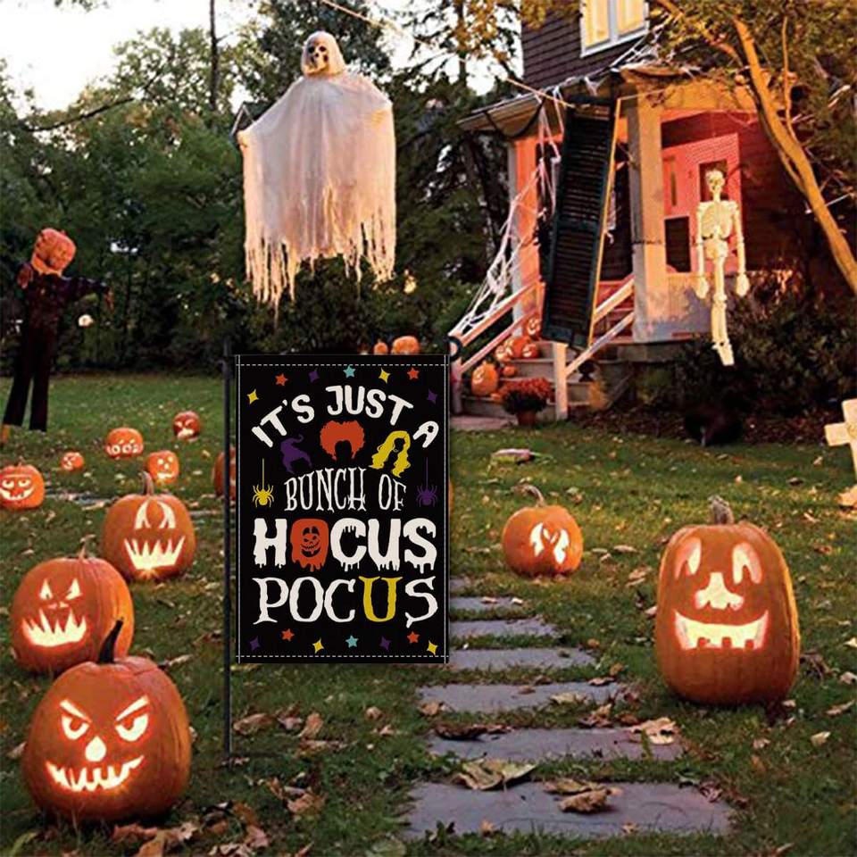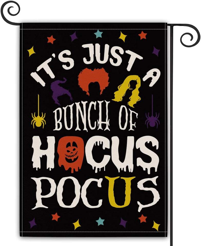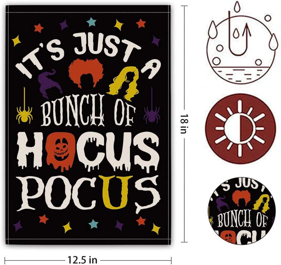 12.5 X 18 Inch Double Sided Sanderson Sisters Garden Flag Vertical Halloween Hocus Pocus Amuck Broom Double Sided Garden Flag