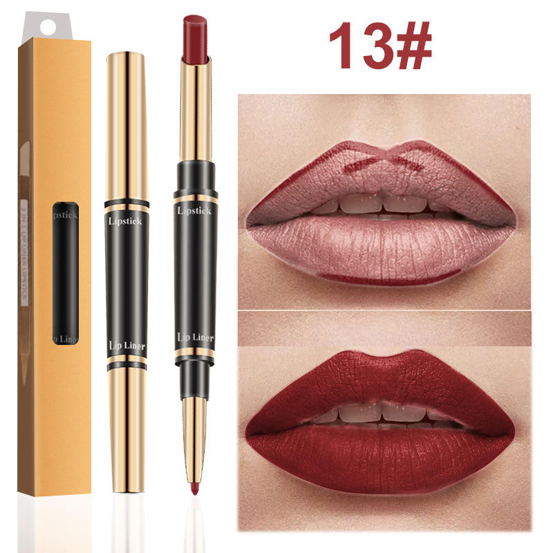 12 Color Matte Matte Waterproof Gold Double Head Lipliner Lipstick Pen Two in One Set Wholesale