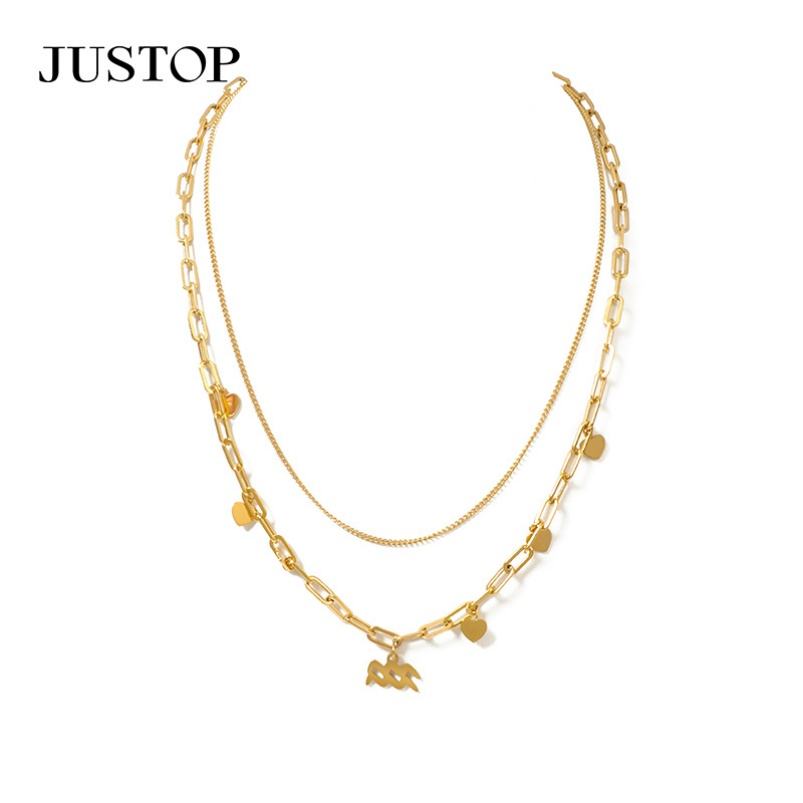 12 Constellations Zodiac Signs Charms Heart Pendant 18K Gold Plated Stainless Steel Casual/Sporty Necklace Chain Link Women