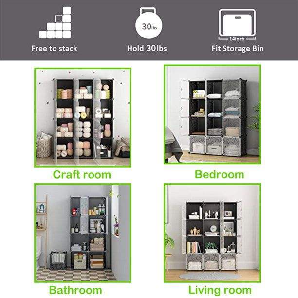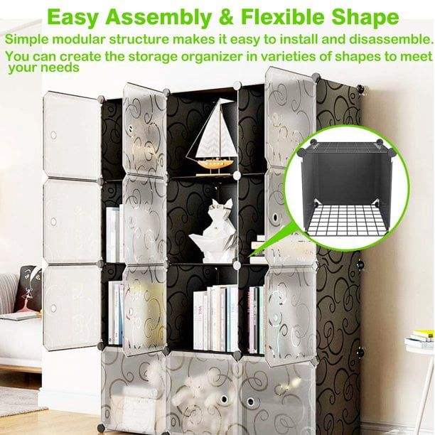 12-Cube DIY Black Closet Cabinet Shelves Cube Storage Bookshelf Organizer Square Storage Shelves Closet Systems Organizers