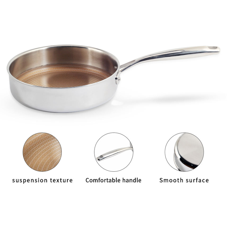 12" Fry Pan with Lid, Tri Ply Stainless Steel Aluminum Core Cookware with Multi-Layer Nonstick Coating